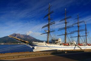 ②昼の桜島と日本丸