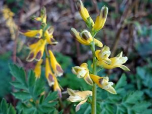 ①キケマン ②アオキ(雄花) ③アオキ(雌花) ④ヒマラヤユキノシタ ⑤ヒメリュウキンカ