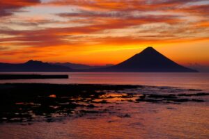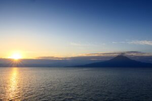 ①朝焼け ②③ダイヤモンド薩摩富士 お茶屋の場公園から、ダイヤモンド薩摩富士の初日の出が見られますよ~❗ 今の予報では微妙😭 晴れますように🎵 ④サザンカ ⑤ナノハナ