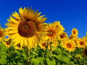 ①②初冬のヒマワリ ③チロリアンランプ ④ヒメツルソバ ⑤ゲンペイコギク