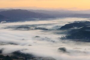 ①伊佐富士鳥神岡からの星降る夜景と、ダイヤモンド韓国岳 ②日本の原風景を想い出させる布計地区