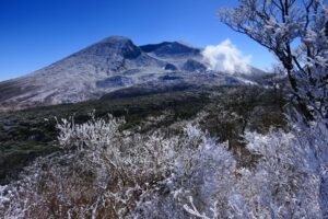 霧島六観音御池周辺の樹氷と、韓国岳・硫黄山、六観音御池、甑岳などの絶景です🎵