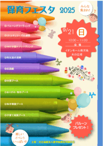 保育フェスタ 2025 日時:9月21日(日) 10:00~15:00 会場:イオンモール鹿児島 水の広場 主催:社会福祉法人鹿児島県保育連合会 みんな集まれ! 楽しいイベントいっぱい!! 投稿 みらい保育園 &nb […]